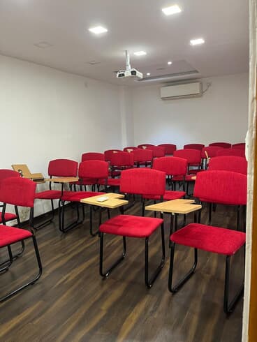 The board room is part of a larger training venue. It also includes classrooms, private cabins, and a discussion space. As a result, organizers can use the facility for both large sessions and private discussions. The 10 seater board room is ideal for client meetings, team brainstorming, and mentoring sessions. The setting is private, professional, and distraction-free.