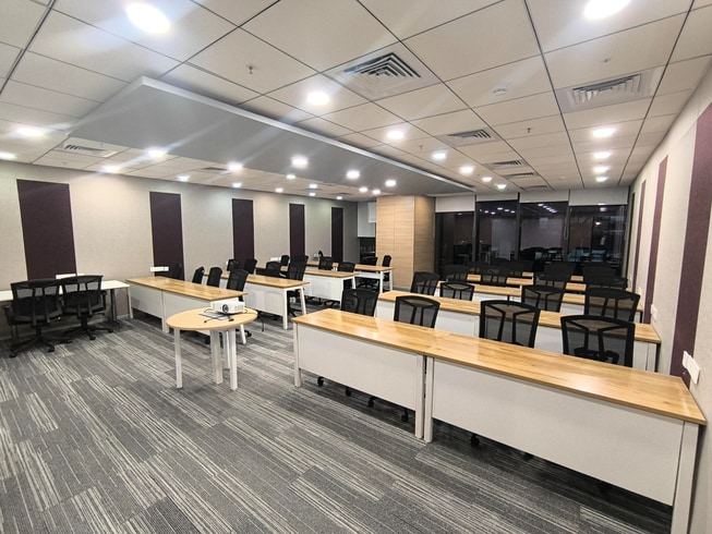 This 35 Seater Training Space offers AV-ready infrastructure, ergonomic seating, and fast internet. It is ideal for corporate training, onboarding, workshops, and SME learning sessions. The venue also provides breakout access and on-ground support, ensuring a smooth and productive training experience.🎤 AV-Ready Setup for Easy Presentations
