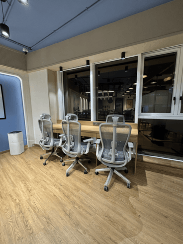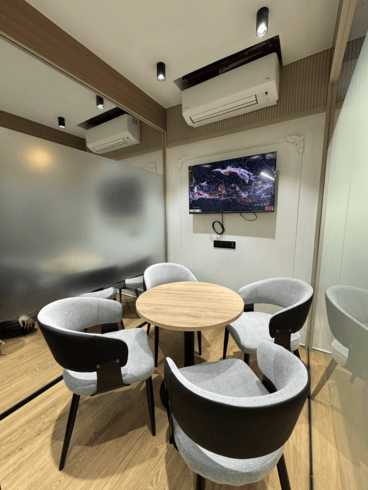 This private meeting room is suitable for up to four participants and works well for interviews, client meetings, and internal discussions. It offers a quiet setup with comfortable seating and reliable internet. In addition, flexible hourly usage allows teams to book the space only when needed, making it a practical option for short and focused meetings.