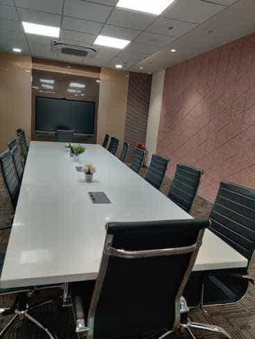 The board room supports presentations and hybrid meetings with reliable Wi-Fi and display connectivity. Additionally, power backup ensures meetings continue without interruption. Air-conditioning and good lighting also help teams stay comfortable during longer sessions.