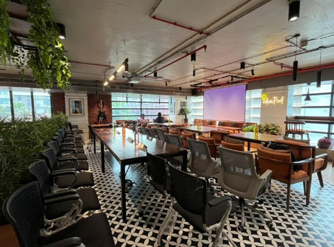 This Event Space Kolkata includes a projector, big screen display, presenter system, whiteboard, and multiple plug points to support interactive sessions. In addition, comfortable seating ensures audience convenience during longer events.