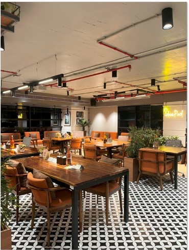 This Event Space Kolkata includes a projector, big screen, presenter system, and podium. It also offers wireless microphones, lapel mic, recording mic, and instrumental mic options. As a result, you can host panel discussions, launches, and internal events without technical delays.