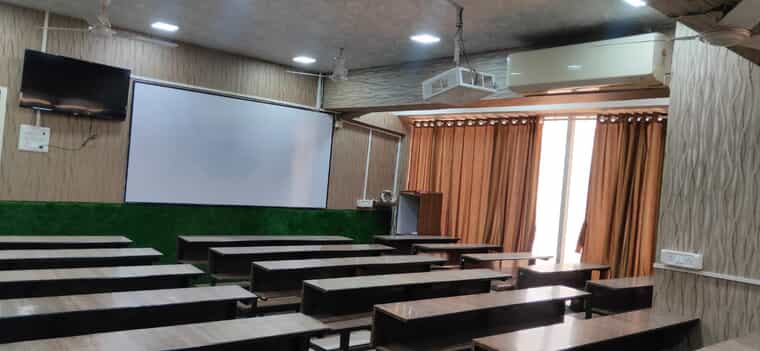 The venue is easy to reach by train, metro, or road. The classroom is fully air-conditioned and fitted with Wi-Fi, a large whiteboard, an LED TV, and a projector box. Trainers can also use a podium and raised platform for clear visibility during presentations.
